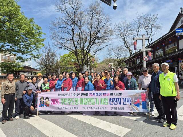홍천군 화촌면 장평1리 청사초롱 마을(이장:이정근)은 18일 주민 45명이 참여한 가운데 전주 일원에서 선진지 견학을 개최했다. 이번 견학은 주민주도형 마을만들기 위한 프로그램으로 추진됐고, 주민들은 경기전과 전동성당 한옥마을 국립 전주박물관을 관람했다.