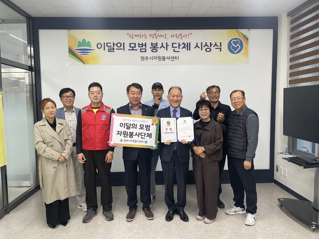(사)작은천사(대표:이준규)는 21일 원주시자원봉사센터(센터장:최원지)에서 떡국떡·송편·김장김치 나눔봉사와 취약계층을 위한 이미용 봉사활동 등을 꾸준히 전개한 공로로 이달의 모범 자원봉사단체에 선정, 표창을 받았다.