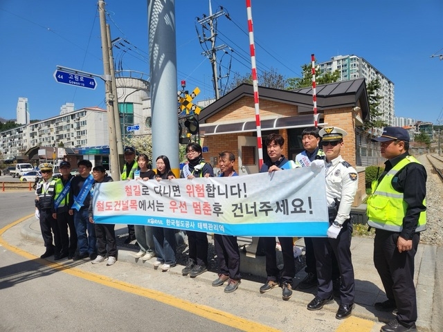 철도공사(코레일) 태백역은 4월 철도교통안전의 달을 맞아 지난 18일 태백 문곡 건널목에서 철도건널목 안전 이용 캠페인을 실시했다.