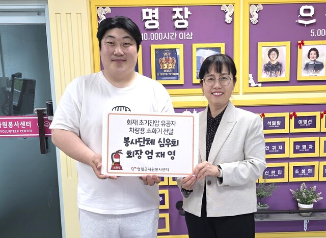 영월군자원봉사센터(센터장직무대행:전정은)는 지난 20일 센터에서 화재를 신속히 진압해 대형 피해를 예방한 엄재영씨에게 감사의 뜻을 전하고 차량용 소화기를 전달했다.