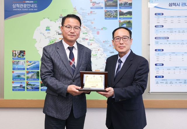김광철 삼척시장 권한대행은 21일 희망 2026 나눔캠페인에 고액 기부단체로 선정된 종단대순진리회 성주회(강원종합박물관)에 이웃돕기 나눔확산 문화에 기여한 공로를 기리는 감사패 전달했다.