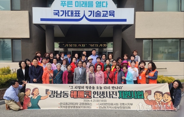 강릉시 강남동지역사회보장협의체(공공위원장: 이미경, 민간위원장: 최찬원)는 21일 한국폴리텍대학 강릉캠퍼스에서 지역 홀몰어르신들의 아름다운 순간을 남겨드리기 위한 ‘강남동 헤.메.코 인생사진 지원사업’을 실시했다.