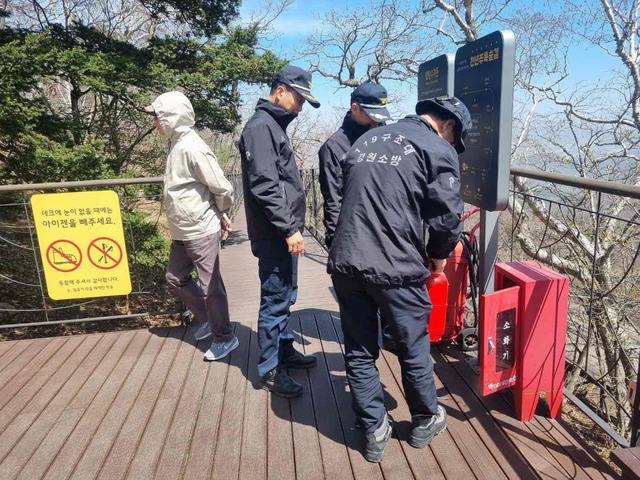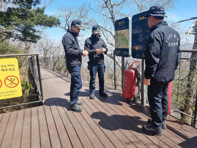 【평창】평창소방서(서장:김근태)는 지난 21일 봄철 행락객 증가에 따른 산악사고 예방을 위해 대관령면 소재 발왕산을 찾아 산악 안전시설 현장 점검을 실시했다.