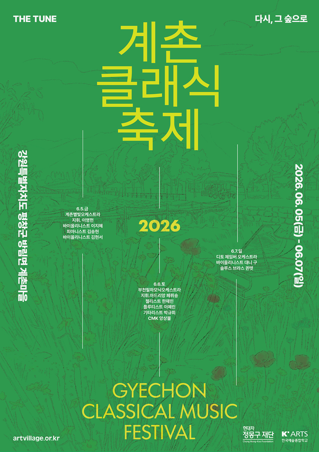 【평창】평창의 대표 문화예술 축제 ‘계촌클래식축제’가 오는 6월 5일부터 7일까지 사흘간 계촌 클래식 예술마을 일원에서 개최된다.