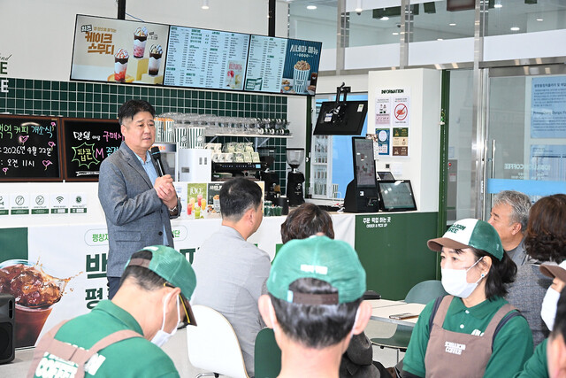 평창지역자활센터 자활근로사업단 ‘백억커피’ 개소식이 22일 대관령면 평창올림픽플라자에서 열렸다. ‘백억커피’는 커피와 음료, 간식을 합리적인 가격에 제공하는 시장진입형 자활사업단이다.