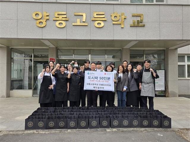 양동고와 메덩골정원은 최근 지정면행정복지센터에 저소득 소외계층을 위해 직접 만든 도시락 50개를 기탁했다. 김설영기자 snow0@kwnews.co.kr