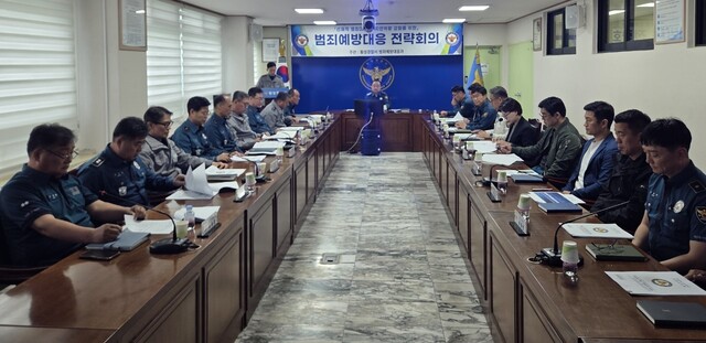 ◇횡성경찰서(서장:장은석)는 23일 경찰서 회의실에서 각 과·계장 및 지역경찰관서장 등이 참석한 가운데 범죄예방·대응 전략회의를 개최했다.