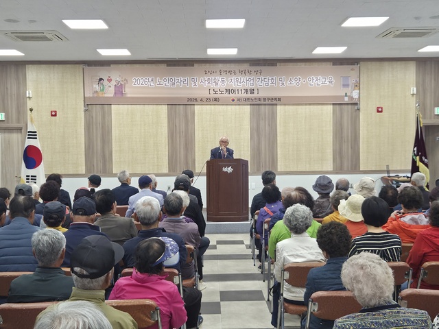 대한노인회 양구군지회(회장:엄영현)는 23일 노인복지센터에서 2026년 노인일자리 및 사회활동 지원사업 간담회 및 소양·안전 교육을 실시했다.