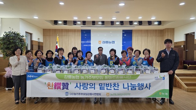 강릉농협(조합장:최장길)과 강릉농협 농가주부모임(회장:최경인)은 지난 22일 강릉농협 본전 4층 강당에서 정성스레 만든 봄김치로 밑반찬 세트를 만들어 홀로 사는 어르신 등 지역내 어르신 댁을 방문해 직접 전달하며 찬찬찬 밑반찬 나눔 행사를 펼쳤다.