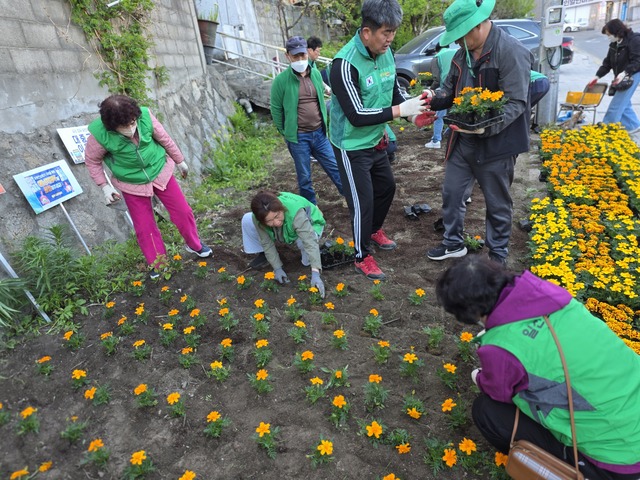원주 일산동새마을회(지도자회장:고성철·부녀회장:황해옥)는 24일 일산근린공원과 일산초교 일원에서 메리골드, 홍설 등 계절꽃 2,000송이를 심었다.