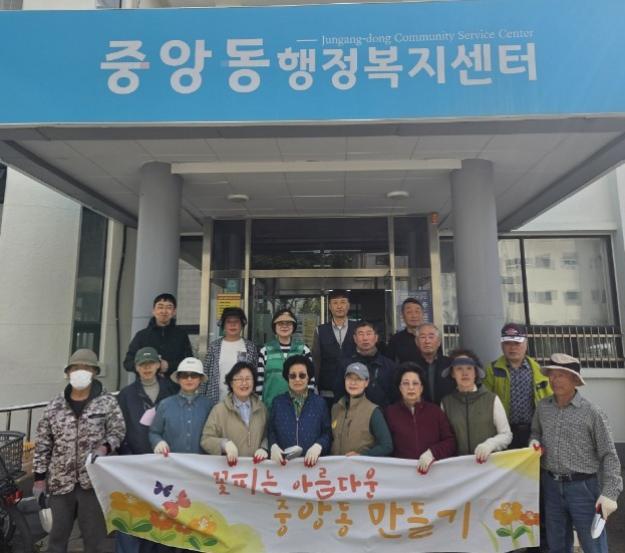원주 중앙동통장협의회와 새마을회는 최근 중앙동행정복지센터와 정지마을 쉼터에 꽃을 심었다. 김설영기자 snow0@kwnews.co.kr