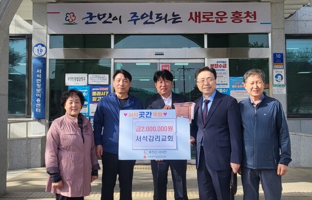 서석감리교회(담임목사:이준훈)는 23일 서석면행정복지센터를 방문해 취약계층 긴급지원을 위해 마련된 서석곳간에 200만원을 전달했다.