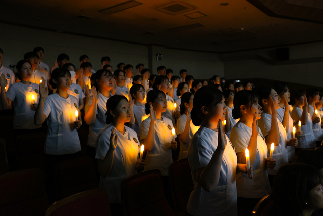 상지대 간호학과(학과장:김현수)는 지난 24일 대학에서 ‘제16회 나이팅게일 선서식’을 했다. 김설영기자 snow0@kwnews.co.kr