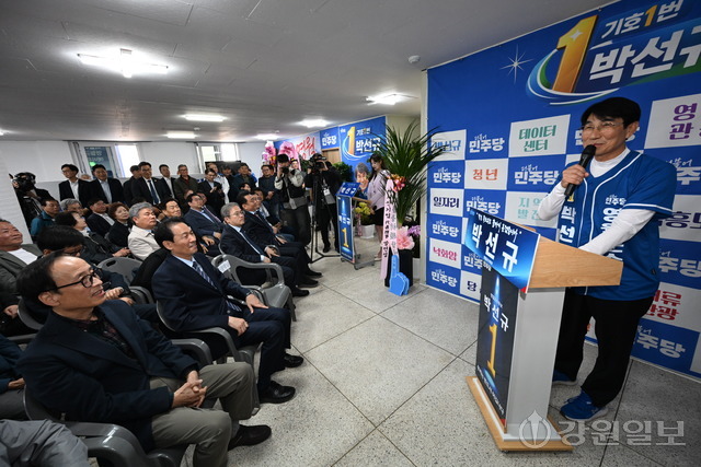 박선규 후보는 지난 24일 영월읍 하송리 선거사무소에서 우상호 예비 후보 등이 참석한 가운데 개소식을 개최했다.