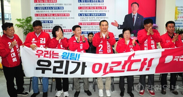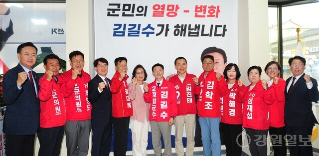 【영월】국민의힘 김길수 영월군수 예비후보가 김진태 국민의힘 도지사 예비후보와 함께 선거사무소 개소식을 열고 본격적인 세 확산에 나섰다.
