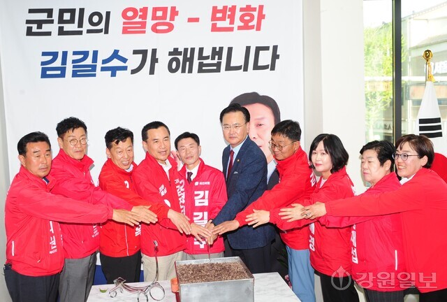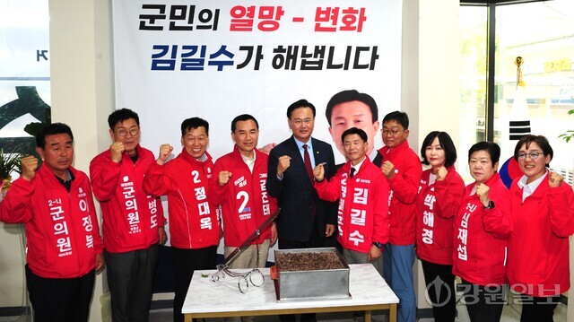 김길수 예비후보는 지난 24일 영월읍 중앙로 선거사무소에서 유상범 국회의원과 김진태 도지사 예비후보 등이 참석한 가운데 개소식을 개최했다.