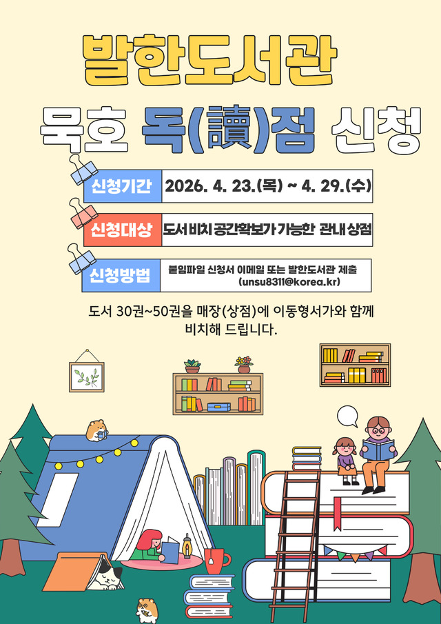 참여를 희망하는 상점은 오는 29일까지 시립도서관 홈페이지 또는 방문을 통해 신청할 수 있으며, 자세한 사항은 발한도서관(539-8541)으로 문의하면 된다.