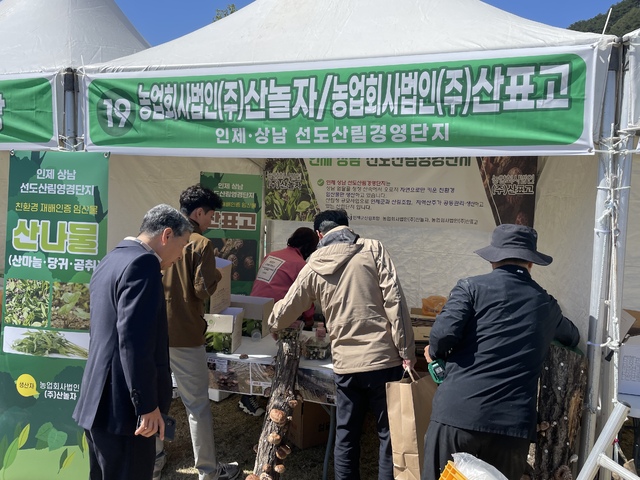선도산림경영단지 조성사업에서 산물재배단지의 생산·운영을 맡고 있는 ㈜산놀자와 ㈜산표고는 친환경재배인증(무농약)을 취득한 산마늘과 표고를 출하한다. 두 업체는 이번 산나물 직거래 행사에 참여해 임산물을 홍보하고 판매 활동에 나섰다.