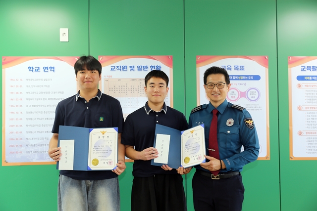 동해경찰서는 북평고 3학년 김민준·문현 학생에게 지난 24일 경찰서장 표창을 수여했다.