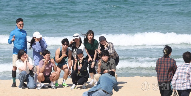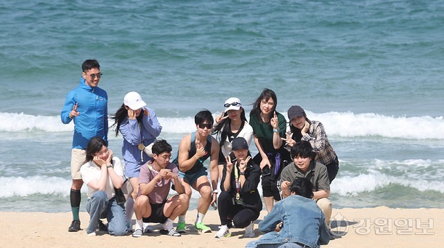제30회 삼척 황영조 국제 마라톤대회를 마친 마라톤팀이 25일 삼척해변을 찾아 메달을 걸고 추억을 남기며 즐거운 시간을 보냈다. ‘2026 삼척 황영조 국제마라톤대회’에 참가한 전국 마라토너들과 가족, 동호인들로 삼척지역 경제가 모처럼 활짝 웃음꽃을 피웠다.