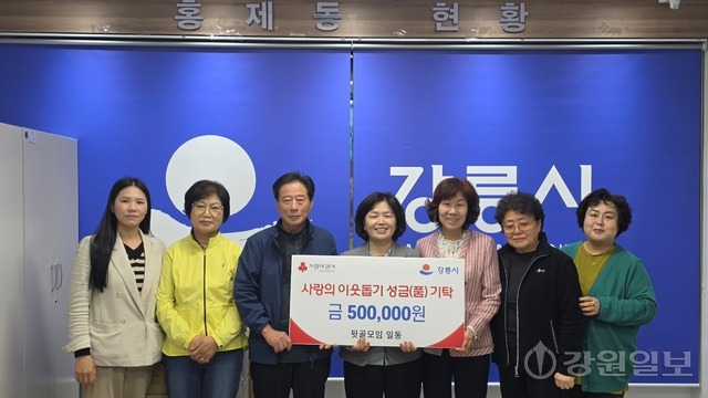 강릉시 홍제동 주민들로 구성된 뒷골모임회(회장: 권혁복)는 지난 24일 홍제동 주민센터를 방문해 관내 취약계층을 위한 성금 50만 원을 기탁했다.