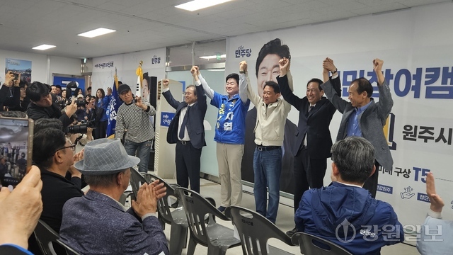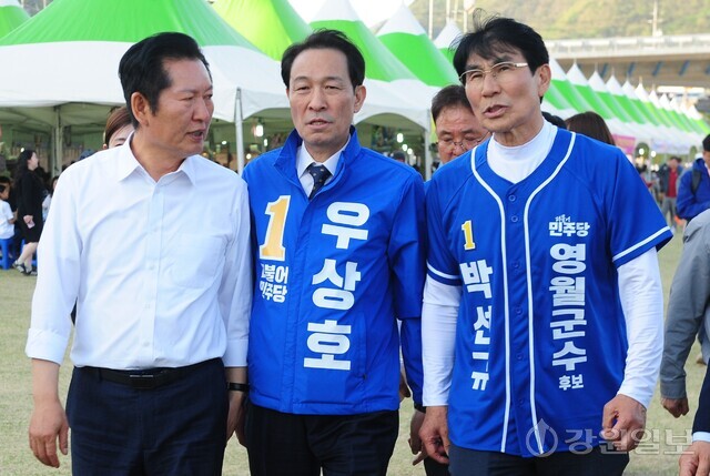 우상호 후보는 지난 24일 이광재 전 지사와 함께 박선규 영월군수 후보 선거사무소 개소식을 찾은 데 이어 25일엔 이정훈 삼척시장 후보 개소식에 참석했다. 26일엔 최문순·이광재 전 지사와 구자열 원주시장 후보 개소식에 함께하며 힘을 실었다. 우 후보는 “강원 발전을 위한 엔진을 힘차게 돌릴 수 있도록 민주당 후보들과 함께 최선을 다하겠다”고 강조했다.