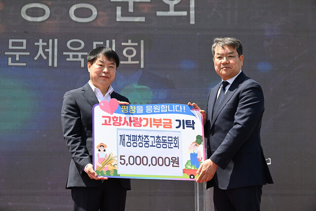 총동문회는 지난 25일 평창종합운동장에서 열린 제50회 평창중고총동문체육대회에서 평창군에 고향사랑기부금 500만원을 기탁했다.