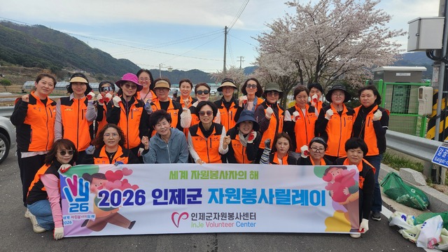 인제군자원봉사센터(센터장:이영자)는 27일 북면 인북천 일원에서 북면여성의용소방대(대장:조명자)와 인제군자원봉사릴레이 활동으로 환경정화활동을 했다.