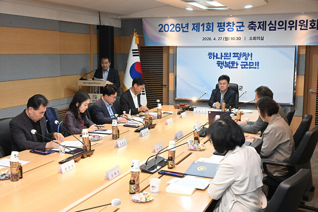 ‘평창군 2026년 제1회 축제심의위원회’가 27일 군청 소회의실에서 위원 등 10여 명이 참석한 가운데 열려 지난해 축제의 성과평가 결과 보고 및 올해 축제 운영계획안을 심의했다.