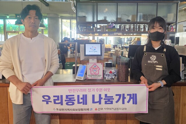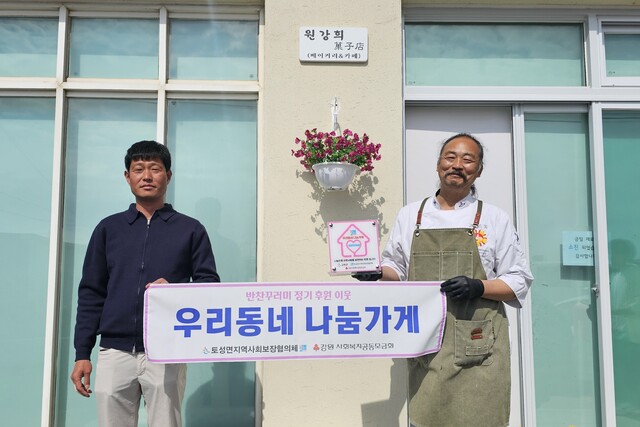 고성 토성면지역사회보장협의체는 27일 지역 내에서 정기적으로 후원을 이어오고 있는 원강희과자점과 바다정원을 나눔가게로 선정해 ‘우리동네 나눔가게’ 현판을 전달했다.