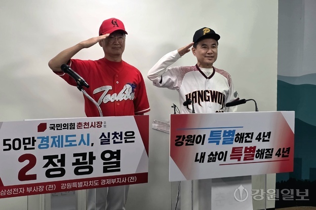 【춘천】김진태 국민의힘 강원특별자치도지사 후보와 정광열 국민의힘 춘천시장 후보가 “춘천에 프로야구 1군 구단 창단 및 유치를 추진하겠다”고 공동 공약을 발표했다.