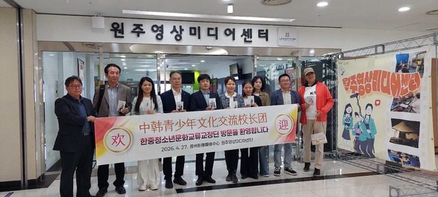 한중청소년문화교류교장단은 27일 원주영상미디어센터를 방문해 셀프스튜디오 체험 등 미디어 시설을 견학했다. 김설영기자 snow0@kwnews.co.kr