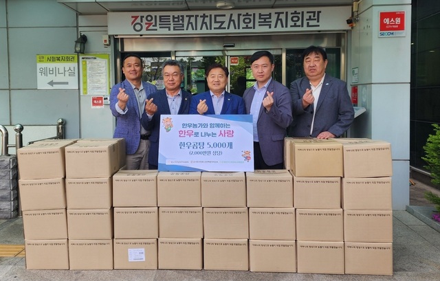 한우협회 강원도지회가 4,500개 강원한우조합공동사업법인이 500개를 후원해 마련한 한우곰탕은 도 사회복지협의회를 통해 도내 취약계층과 사회복지시설에 전달될 예정이다.