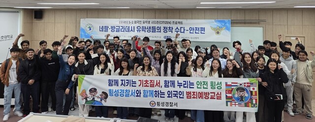 ◇횡성경찰서(서장:장은석)는 27일 송호대에서 네팔 및 방글라데시 국적의 외국인 유학생 80여명을 대상으로 ‘찾아가는 외국인 범죄예방 교실’을 개최했다.