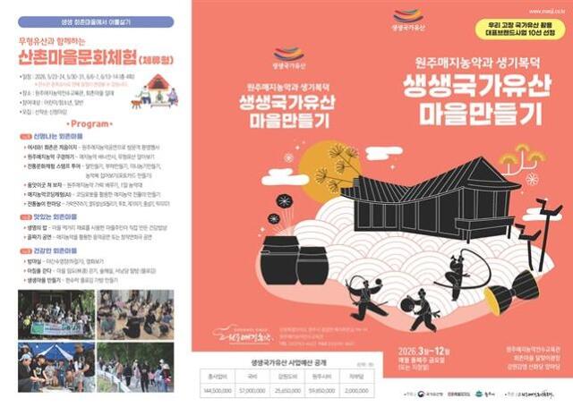 사업은 국가유산청 우리 고장 국가유산 활용사업의 10대 브랜드사업에 선정됐다. 강원특별자치도 무형유산인 원주매지농악을 활용한 공연·체험·축제 등 다양한 프로그램이 마련된다.