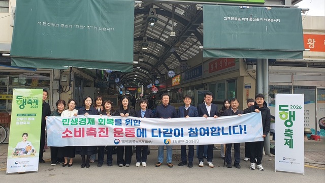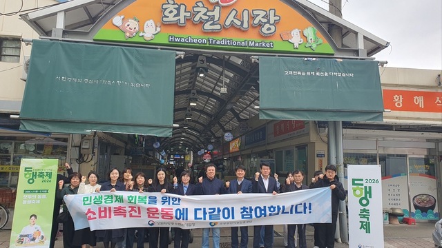 강원지방중소벤처기업청(청장:서종필)은 소상공인시장진흥공단 강원지역본부(본부장:백순임)과 함께 2026 동행축제를 맞아 28일 화천시장에서 전통시장 소비촉진 캠페인을 진행했다. 이날 도내 유관기관 및 협단체 등이 참가해 장보기 행사와 함께 디지털 전통시장 온누리 상품권을 홍보했다.