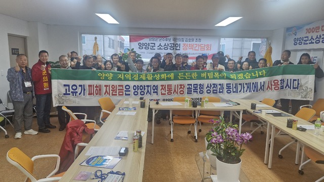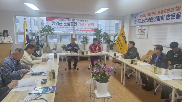 양양군소상공인연합회(회장:김동술)는 28일 양양읍에 있는 연합회 사무실에서 국민의힘 김호열 양양군수후보를 초청해 지역소상공인 자생력강화 및 지역경제활성화를 위한 정책을 제안하고 지역경제 활성화를 위한 소상공인 지원정책에 대해 의견을 들었다. 양양=김보경기자