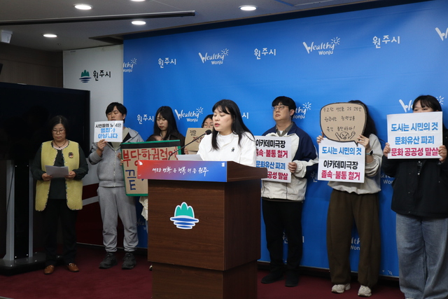 아친연대는 28일 원주시청에서 기자회견을 통해 “원강수 원주시장이 이달 열린 출마 기자회견에서 아카데미극장 관련 고발 시민 24인의 무죄 판결에 대한 질의에 “시민 고발은 문제없다”는 취지로 답변한 것에 대해 강한 유감을 표한다”며 “시는 아카데미극장 철거를 시민과의 충분한 토론과 숙의 없이 강행했고, 그 과정에서 시민들을 재판으로 내몰았지만, 지금까지 행정 책임에 대한 반성과 사과는 없었다”고 주장했다.