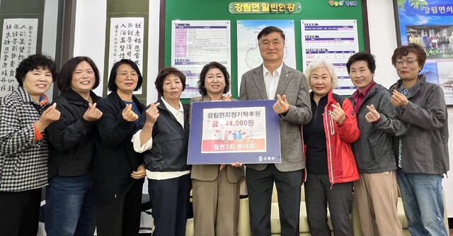 ◇횡성군 강림면 월현2리 부녀회(회장:정애자)는 28일 강림면행정복지센터를 방문해 성금 성금 74만4,000원을 강림면지역사회보장협의체에 지정기탁했다.