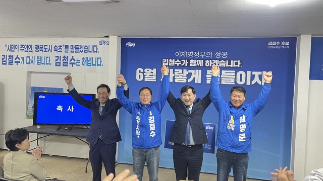 개소식에 참석한 우상호 더불어민주당 도지사 후보는 “지난번 이재명 대통령 선거 때도 굉장히 어려움을 겼었던 이곳 속초에 변화의 새바람이 불고 있다”며 “저하고 김철수 후보가 호흡이 잘 맞아서 속초도 발전시키고 또 강원도도 발전시키고 바로 그런 기회가 이번 선거”라고 말했다.