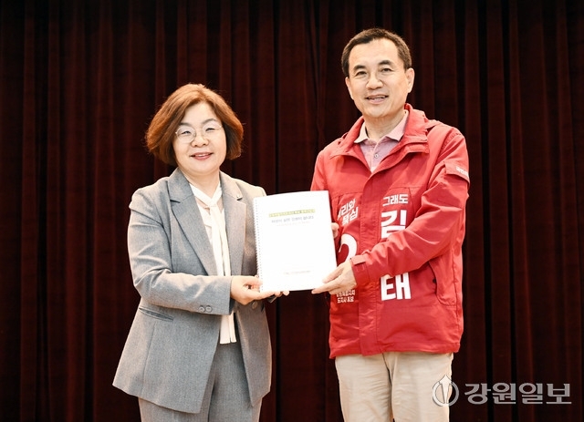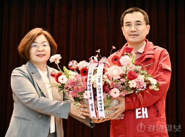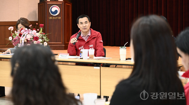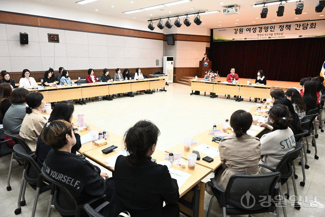 강원 여성경영인 정책 간담회가 28일 강원지방중소벤처기업청에서 김진태 국민의힘 강원지사 예비후보와 김선미 강원여성경영인협회장을 비롯한 회원들이 참석한 가운데 열렸다.
