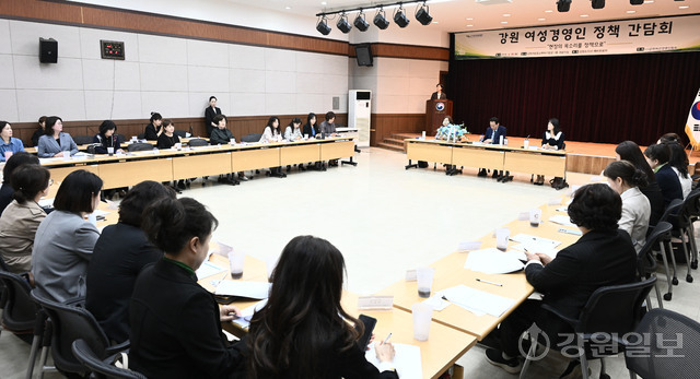 강원 여성경영인 정책 간담회가 28일 강원지방중소벤처기업청에서 우상호 더불어민주당 강원지사 예비후보, 김선미 강원여성경영인협회장을 비롯한 회원들이 참석한 가운데 열렸다.