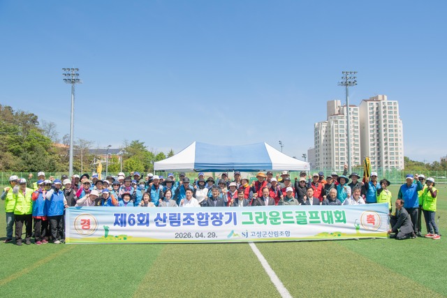 제6회 고성군산림조합장기 그라운드골프대회가 29일 고성군종합운동장 보조경기장에서 전철수 고성군수 권한대행, 용광열 군의장, 김용복 도의회 부의장, 이지영 도의원, 곽상규 고성군체육회장, 홍순흥 고성군그라운드골프협회장, 5개 읍·면 그라운드골프회원 150여명이 참가한 가운데 열렸다.