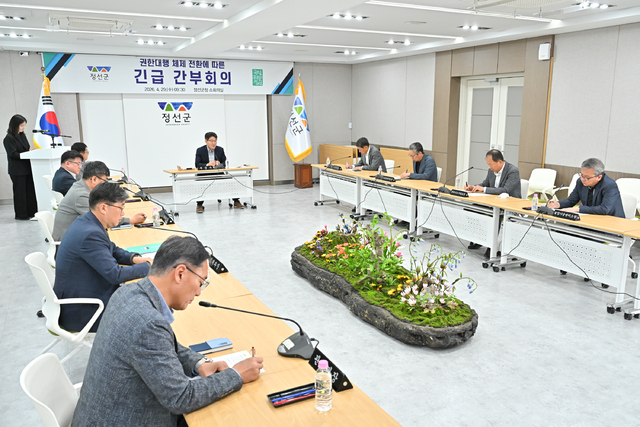 군은 29일 군청 소회의실에서 곽일규 군수 권한대행 주재로 행정·시설국장을 비롯한 과장 등 간부들이 참석한 가운데 긴급 간부회의를 열고 군정 운영 방향과 주요 현안 대응 방안에 대해 논의했다.