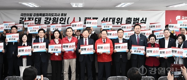 국민의힘 김진태 6·3지방선거 강원지사 후보가 5만명 규모의 강원인(人)캠프 선거대책위원회 출범식을 갖고 재선을 향한 총력전에 돌입했다.