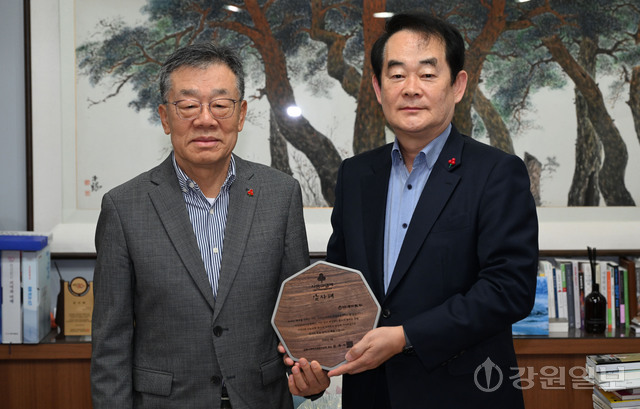 강원사회복지공동모금회가 나눔문화 확산에 힘을 보탠 지역언론의 역할에 감사를 전했다. 강원사회복지공동모금회는 30일 강원일보를 방문, ‘희망2026나눔캠페인’ 기간 기부 참여 분위기 조성에 기여한 공로로 박진오 강원일보 사장에게 감사패를 전달했다.