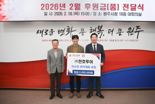 ㈜천호투어(대표:천호영)는 19일 원주시청에서 저소득 취약계층을 위한 지정기탁 후원금 200만원을 원주시에 전달했다.