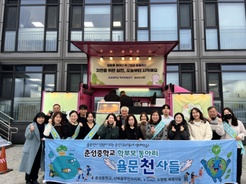 춘성중학교 학부모동아리 '율문천사'는 19일 교내에서 열린 예맥제에서 일회용품 줄이기와 탄소중립 실천을 주제로 환경캠페인을 진행했다. 탄소중립(炭素中立, carbon neutrality)은 인간의 활동에 의한 온실가스 배출을 최대한 줄이고, 남은 온실가스는 흡수, 제거해서 실질적인 배출량을 0(Zero)으로 만든다는 개념이다. 이번 캠페인은 신북읍주민자치회와 K-water 소양강댐 육영사업이 '율문천이 정원이 되는 순간'을 꾸준히 이어온 연장선에서 기획·운영됐다. 특히 '율문천사' 회원들이 행사의 중심이 돼 캠페인을 이끌었고, 춘성중 학생들과 교직원, 주민자치회가 함께 참여해 환경 실천의 의미를 더했다. 행사에서는 분리수거 게임과 환경보호 퀴즈 등 다양한 체험형 프로그램들이 운영돼 학생들이 놀이를 통해 자연스럽게 환경 보호의 중요성을 느낄수 있도록 했다. 또한 미션을 수행하면서 참여하는 스템프 놀이 체험 부스는 축제 분위기 속에서 환경 실천을 익히도록 해 큰 호응을 얻었다. 이번 캠페인은 학교, 가정, 지역이 함께하는 탄소중립 실천의 장으로, 환경 교육과 공동체 참여가 자연스럽게 어우러진 사례로 평가된다. 춘성중 홍명희 교장은 "학생들이 즐겁게 참여해 환경의 가치를 체득할 수 있는 뜻 깊은 행사"라며 "학부모동아리가 중심이 돼 학교와 지역이 함께 만들어 가는 이러한 실천이 지속되길 바란다"고 말했다. 행사를 주관한 학부모동아리 회장은 "환경보호를 어렵지 않고 재미있게 전달하고 싶었다"며 "앞으로도 학생들과 지역사회가 함께 참여하는 탄소중립 실천을 꾸준히 이어가겠다"고 했다.