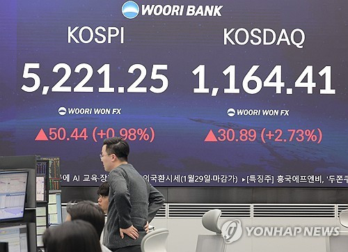 2026-01-29 [10:05:32]삼성전자 역대급 실적에 코스피 5,200 돌파 마감…코스닥도 2.7%↑